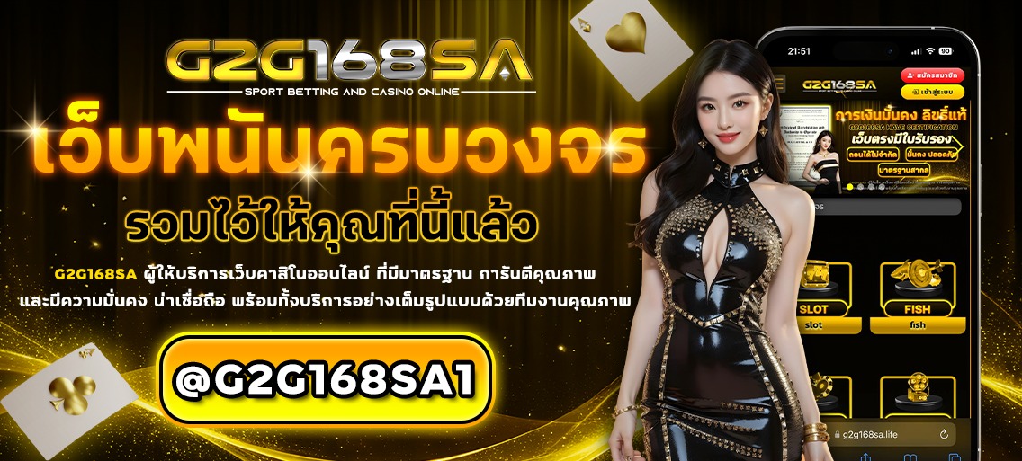 g2g168sa คือตัวเลือกอันดับหนึ่งสำหรับผู้ที่มองหาประสบการณ์บาคาร่าและคาสิโนออนไลน์ที่ครบวงจร ด้วยจุดเด่นด้านระบบอัตโนมัติที่รวดเร็ว ความมั่นคงทางการเงินระดับสากล และการบริการที่เน้นผู้เล่นเป็นศูนย์กลาง ทำให้การเดิมพันที่นี่มีความปลอดภัยและมีโอกาสทำกำไรได้จริงในทุกๆ วัน
